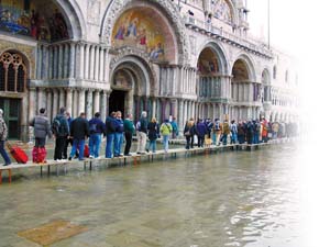 每年11月上旬,由于季风原因,亚得里亚海的海水会大量涌入威尼斯泻湖,引起水位上涨,使城市大部分地区受淹。尽管因工作关系,这些年来记者不知去过多少次威尼斯,但均未赶上这种机会。日前,记者应邀去威尼斯采访,恰逢威尼斯连续多日遇到海水的侵袭,总算亲自体验了一次水城涨水的感觉。