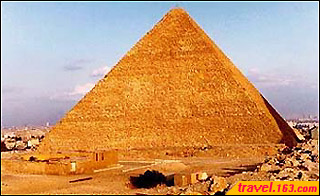 望着她那一对大眼睛,我还能再提什么要求呢?我连连“咩塞咩塞!”(谢谢!谢谢!),朋友却说,这位“木须柏”是位摄影家,随身携带的摄影器材很重,能否请贵公司给予免费托运行李的照顾?姑娘思索了一下,便爽快地说,“既然我们公司给这位先生的旅行造成了麻烦,照顾一下也是应该的。”说罢,很快开了一张增加免费托运行李20公斤的票递给我:“祝你好运!” 20个小时后,当波音747终于越过地中海,机身下又出现一片灯的海洋时,著名的国际大都会城市——开罗,以她迷人的身姿拥抱我这个来自东方的崇拜者。 终于看到了金字塔,这里是开罗西侧的吉萨。放眼一望,金字塔个个如刀削般齐整,宛如放置在无垠荒漠中的巨大棱锥体。走近她时,便强烈火地感觉到4000年大自然的洗礼,块块巨石被雷雨风霜浸蚀的坑坑洼洼。有些地方呈台阶状,只不过每阶高约3尺多正好是一块石料的高度,金字塔塔脚下还有许多大小不一的石块,我捡了一块鸡蛋大小的带了回来。