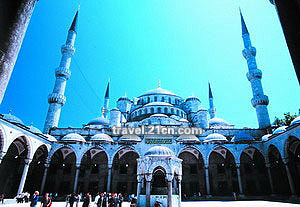 土耳其人真是热情,热情到让我难以招架。走在路上,常常有帅哥对着我夸张的挥手,我报以微笑,他们就对着我不停地飞吻。 在索非亚教堂门口我正忙着拍照,有个小伙子径直朝我走来要与我合影,满足愿望后还不肯走,塞给我一叠写了MSN地址的明信片,抓起我的手响亮的一吻,好不容易说了再见还要一步三回头。 在皮草中心参观时被高大英俊的男模特拉着走秀,表演结束他很绅士的拥抱我,夸我娇小可爱象个小精灵。 哇!我的虚荣心开始大肆膨胀了,我知道你一定又会臭我被那些善意的示好和赞美冲昏了头脑,可这也是人类的天性啊。 最喜欢坐车在跨海大桥上飞驰,每一次从此岸到彼岸的过程就是在穿越欧亚两洲。我们常常一会儿在欧洲观光,一会儿在亚洲购物,感受着地理空间变换的奇妙感觉,横跨两大洲而乐此不疲。 和煦的阳光在马尔马拉海上撒下片片金鳞,午后慵懒安静的气氛里突然有人喊:“快看,海豚!”我们惊讶地看到真的有海豚在海里畅游,看着那些可爱的小家伙在潋滟的波光里穿梭,整车的人都快乐地象天真的孩子一样拍手欢呼起来。 船缓缓地行驶在博斯普鲁斯海峡的中轴线上,两岸翠绿的山丘给我满目青葱。流连岸边仿佛是童话里的别墅,感悟更始交替的古老情怀,俯拾可得的美景让每一丝空气都满载着浪漫的因子。