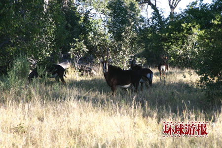 寻找猛兽的踪迹 晚上的Okavango有点冷,但很安静,各种小昆虫、叫不出名的鸟在我周围传递着大自然的声音,偶尔还能听到几声大象的叫声,这里远离城市的喧嚣,我安然进入梦乡。 清晨六点半,我伴随着狮子低沉的闷吼自然醒来,天边出现一个红色的太阳,好像世界就从这里开始一样。 吃过早饭,我和树上活蹦乱跳的狒狒打了个招呼,径直走向早已等候在门外的越野车。在轮胎周围我们发现了许多清晰的动物脚印,向导告诉我们这是豹子在清晨留下的,根据脚印的大小判断,个头还不小呢。不远处还有狮子的脚印,看来这些凶猛的大型猫科动物都曾在凌晨光临过我们的小木屋。 坐上车,向导开着车沿着猛兽的踪迹驶去,我们的心情也很激动,毕竟来非洲这么多天了,还没看见狮子的影子呢。黑人向导边开车边模仿母狮子发出低沉的吼声,据说可以吸引别的狮子的到来,他还不时下车查看狮子留下的脚印。 在路过一棵歪脖树的时候,我们的车停了下来。树上挂着一对羚羊角,向导说,这是豹子把羚羊拖到树上,然后吃掉留下的。豹子是不会在捕获猎物的地方进食的,它一般会把猎物拖到安全的地方再享用美食。我看那对羚羊角还真大,这头豹子的个头肯定不小,力量巨大。 转悠了几个小时净看脚印了,仍然没有发现狮子、豹子的踪迹,毕竟是猛兽,喜欢在夜间捕猎,白天日照强烈,都找地方躲起来了。在经过一片草丛的时候,突然一群大鸟四散飞起,它们的头是红的,翅膀很大是黑色的,飞行起来煞是好看,在空中做着各种飞翔的动作,我急忙拿起相机按动快门。 非洲斑马是很漂亮的动物,我们在一个池塘边发现了它们的踪迹,大约有20多头斑马在喝水。它们身上那黑白色的线条,在蓝蓝的天空、绿色的树丛的衬托下,显得是那么夺目,我当时真想跳下车,跑过去摸摸它们。斑马也是食草动物,随时会有猛兽袭击它们,它们自我保护意识很强,水塘是最容易受攻击的地方,在喝完水后,它们就迅速离开了。