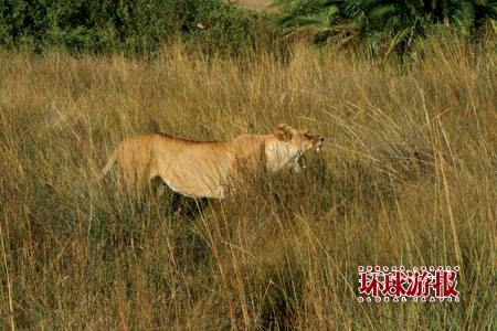 狮子就在那里 在转悠了大半天后,大家都有些疲劳,向导把车子开进一片开阔地停下,从一个大箱子里拿出冰镇啤酒、红酒、咖啡等各种饮料供大家挑选,我们也终于可以下车活动一下筋骨了。一边喝着加冰的红酒,吃着小饼干;一边欣赏周围的美景。在非洲的10天时间,几乎每天都有这个项目,我也吃胖了不少。 我问向导,今天能不能看到狮子,他说运气好能看到。我们又出发了。 真是踏破铁鞋无觅处,得来全不费功夫,无论怎么找都找不到,可就在回去快到小木屋的草丛里,我们看到了狮子。 这是一头成年母狮,比动物园里的狮子不知漂亮多少倍,目光犀利充满攻击性,对于我们的到来,它毫不在意,懒洋洋地伏在草丛里,一会儿它站了起来,看都不看我们一眼,从容、缓慢地向丛林深处走去,不远处我们又看到了另一头母狮,它好像稍微有些害羞,不太喜欢我们接近它。向导告诉我们这一片只有这两头狮子,这里是它们的地盘。 我们尾随着这两头狮子,突然我们又发现了两头小狮子,原来是它们的妈妈来看它们了。母狮走到幼狮旁边,躺下,幼狮趴在母亲身上,一大一小在一起玩耍,而我们就在它们5米外的地方观看,谁也不敢出声,狮子可能也知道我们不会伤害它们,所以对我们毫不理会。 向导告诉我们,别看狮子看上去漫不经心,其实它们一直很警觉,随时观察猎物的动向,对于猎物它们非常有耐心,有时会尾随猎物一整天时间,逐步靠近让猎物的警惕性完全丧失,一般会等到夜幕降临才下手;捕猎的时候也会互相配合,一只先埋伏好,另一只发动攻击,把猎物赶到埋伏圈,最后致命一击得手