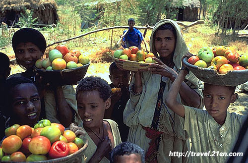 这是一个经纬交汇点。打开地图找,东经38度,北纬11度,这两条线相交的地方,在埃塞俄比亚的境内,在北部高原上。 早上5点半,闹钟响的时候,天还没有亮。没有电,没有水,摸着黑打点好背包。接连几天没有热水洗澡,不敢再用梳子去继续伤害粘成一团的头发,只能努力地把它们编成一根辫子。 汽车站关闭的铁门前挤满了人,却又出奇的安静,没有喧哗,没有拥挤吵闹。年纪轻的小伙子爬上铁栅栏,却并不试图越过墙去。女人们等在外圈,手里提了装得满满的筐子篮子。 原来今天有集市。 而我们这天的计划,是去“猎点”。 以赤道为中心,南北纬线向两极延伸开来,而直贯南北极的经线,以通过英国格林威治天文台原址的那一条为0度,再向东、向西各分作180度。我们生活的地球,就由这些经线纬线交叉着,将每一个地方在地球表面上的位置都清清楚楚地表示出来。你可以在地图上轻易地找到每一个经纬交叉点,但是你知道那个地方的地形地貌吗?那里长什么植物?住什么人?有什么文化? 于是,就有有心人发起了一场世界性的活动,称为“认识我们生活的地球”。每一个人都可以参与,每一个人都可以贡献,大家来走访那些经纬交叉点。在那些点上拍下地形地貌和当地人物的照片,再写一段不拘形式的报道。这样,每一个交叉点就变得鲜活而有生气,它们所展示出来的,不再是一个枯燥的“两条直线相交之点”的概念,而是一部活生生的人类生活的史诗。 自从听说了这个活动,艾比就开始走火入魔。因为西欧北美的大部分点已经被测完,他的眼睛就盯在了那些不发达的地方。从此以后我们的旅行也就增加了新的内容。 汽车挤得已经不能再挤,人们却都很谦和地给旁边的人让着地方。喘息的汽车以每小时15公里的时速上了路,排出的黑色尾气再灌进车厢里,把充满了强烈体味的空气弄得更加混浊不堪。 四个小时以后,GPS指出我们距今天要“猎”的东经38度、北纬11度的经纬交叉点还有4公里的距离,而车轮下那条惟一的土路,却转向了另外一个方向。我们赶快让司机停车。全车的人都不解地望着我们。那个说几句英语的男孩子追下车来,问我们是否确定要在这前不着村后不着店的地方下车。 谢了他,校准了方位,赶快再喝几口水。早饭没有吃,午饭看来也没什么希望,万幸的是在路过的小镇上买到了最后一瓶水,店主人在一大堆小商品里翻出来的陈年旧货,瓶子上落满了灰尘。 复活节前的55天里,是埃塞俄比亚正教的斋月。太阳落山之前是不准吃饭喝水的。天黑以后也只能吃素食。在北部高原上,绝大多数的正教徒是严守教规,并以此为荣的。怪不得我们这些天千辛万苦,总是很难找到饭吃。