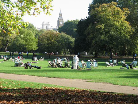 圣詹姆斯公园(st. james's park) 面对白金汉宫的圣詹姆斯公园,原本是圣詹姆斯宫的鹿园,17世纪时查理二世聘请法国景观设计师重新造景,19世纪初在英国著名建筑师纳许的进一步美化之下,成为伦敦市中心最美丽的公园,是市民与游客最佳小憩休闲之地,处处可见晒太阳、散步、野餐的人。隔着林荫大道的圣詹姆斯宫,为红砖都铎式建筑,18和19世纪初曾经为皇室住所,现在则为接待国外使节的正式接待场所。 看点:从桥上隔着湖水眺望白金汉宫,特别是晚上,白金汉宫的夜景更为迷人。