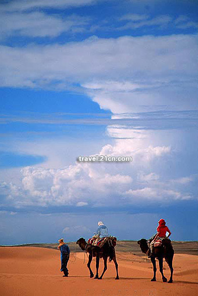 遭遇战争疑云———走还是回头? 几个青少年喧嚷“Konichiwa,Japonaise,hotel,hotel?”想起旅游手册叮咛小心兜客或touts,决定不予理睬,自己按图索骥。哪里知道怎找也找不到。又兜回原路,其中一个少年又跑了过来:“Japonaise,hotel?”沉甸的背包,压倒继续自行找旅舍的念头,告诉少年:“我不是日本人,是华人。正在找X旅舍,你知道在哪里吗?少年做了个跟我来的手势,我半信半疑跟着,真的走到了X旅舍。少年一分钱也没要,使我对自己的小人之心感到惭愧。 柜台告诉我一个扫兴消息:“客满了,到转角那间试试吧。”结果还是碰了钉子,原来旅游旺季还没完全结束。决定不管了,去住那些在旅游手册榜上无名的酒店,在一家略贵但干净的新旅店安顿下来。 折腾半天,放下背包,到外用午餐后,决定返回旅舍休息,明天才来探索小城风光。 在旅舍公共客厅阅读旅游手册的介绍时,一个叫彼德的苏格兰佬跑过来闲聊,然后又自行出外找节目去了。怎知一个多小时后,彼德神色紧张地跑了回来,提高声调说在外头电视看到纽约世贸大厦遭恐怖袭击之事,我跟着跑进咖啡室,虽听不懂阿拉伯语的旁述,电视画面却已经够触目惊心。 回到旅舍,想着形势会如何发展,是取消还是继续行程?下来两天,纱绍湾百姓的山居生活节奏如常,一切十分平静,当地人对四方旅客依旧友善。 我决定按照计划,继续南下,一路蛮顺利地去了费也斯(Fes)和马拉卡什(Marrakesh)两个古城。如果不是上网,看到亲友捎来的电邮,真的感受不到战争疑云的紧张气氛。 天幕沙床———美得炫目! 在马拉卡什,还是决定报名参加一个国际团,前往摩洛哥和阿尔及利亚边界的西撒哈拉。同团的包括:英、澳、日等国的游客。问来自澳洲的R,是否听闻美国的反恐行动。他耸耸肩:“生死天注定。如果此刻赶回国,说不定反而碰上其他的意外,随遇而安吧。”我想当时所有团员,都是抱着同等的心理。 驱车两天,终于抵达美得炫目的撒哈拉。一行人组成骆驼队,欢天喜地走进了漫天的黄沙世界。风刀为大漠勾勒的自然曲线,像被吹绉的金色丝绸,像一弧月牙,也像背脊,我想起了电影英伦情人。 星空下,一行人跟着摩洛哥人击鼓唱歌,十分快活。美丽的英国女子对摩洛哥朋友说:“很多现代城市人有钱,可是并不快乐。你们也许不是很富有,却懂得在沙漠里唱快乐的歌,你们可是比一些有钱人过得开心呀!” 深夜,以沙当床,在苍穹下迟迟不舍入睡,守候飞渡的流星。突然听到澳洲情侣R和B的对话。B深情款款地说:“R,当我们年老时,可以告诉我们的子孙,我们曾经在撒哈拉的星空下,数了一晚流星。”我忍不住笑了出来,寻两人开心说:“好浪漫哦!哈哈哈!”当然,我自己也很满意曾经拥有一片金闪闪的沙漠。 几米在《森林唱游》一书说:“最美的风景,总是要穿过最险恶的脊地才有缘目睹。但是我们永远不会透露,通往秘密基地的小径和那一夜的奇遇。” 在摩洛哥游游荡荡的整段旅程,我当然也保留了一些只有我和风知道的故事,情节肯定不像迪斯尼的童话,倒是像一千零一夜的情节多些,嘿嘿!哪一天你也决定到摩洛哥去寻幽探秘,我想风沙会为你扬起属于你自己的天方夜谭。