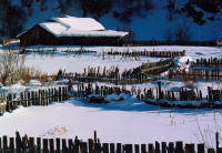 二月十四日今天是情人节,而我们仨在这个纯洁的世界里度过了绝对难忘的情人节,尤其是我,因为我的手机在深山老林里就没有了信号,所以我的情人节与爱情几乎完全没有关系了! 早上醒的挺早,可以毫不夸张的说,我是被活活热醒的!我们过一会儿就得换个睡势,实在象在一口平锅上慢慢加热的三个饼子,如果不自动翻面,就有被烤糊的可能!呵呵!拉开窗帘,窗户有三分之一被白雪挡住,就象住在童话故事中的森林小木屋里!由于这里没有接上自来水,我们带的瓶瓶罐罐(水啊,霜啊,露啊)都没有用武之地,最粗糙的洗漱后坐在桌边品尝农家早饭,馒头/豆腐乳/自制的咸菜/小米粥/水煮鸡蛋,简单却爽口。房东是个有双大眼睛的贤惠的*,生意正是好的时候,忙碌的劳作带给她的不仅仅是喜人的收入,还有因为持续的缺少睡眠留下的黑黑的眼圈!鱼和熊掌不可兼得啊! 在房东的带领下到村子里的小店买了红红的冻梨和黑黑的冻柿子