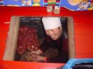 经过一夜的颠簸在青涩的晨光中,踏着满地的白雪,终于来到了雪乡。 在雪乡,除了奶油般的白雪令人难以忘怀之外,就是毕大姐家暖暖的炕和各色好吃的东北菜。 毕大姐家干净明亮,暖意洋洋,加上热情的大姐和朴实的大姐丈夫,让人打从心底喜欢。 房子是一长溜的,就象一截小火车。 从左往右依次是盥洗室,主人房,厨房,及三间客房。 到处都干干净净的,一尘不染 毕大姐是个热爱生活的人,在她家到处可以看见各种花草植物,就连卫生间也不例外,充满情趣。 我们睡的炕是靠着大大玻璃窗边的 当你睡在暖暖的炕上