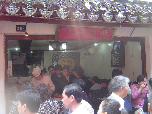 ![]() 一大早7:30就離開酒店,為的是一嚐網友極力稱讚的「阿娘面」,據傳,早上只賣到九點,而且份數賣完了就休息,但是吃面仍然要排隊。坐上地鐵一號線,到「陝西南路站」下,往吳越人家的方向前進,過了滄浪亭的下一條街右轉,這就是「思南路」,約30公尺,路的左邊就是了,店名叫「泰和飲食店」,下方有三個小字「阿娘面」,門面很小,但客人不少,門口收錢賣票,我們點了:「雪菜黃魚面」,16元,「蝦仁面」,12元,另外兩盤小菜「醃鹹菜」和「辣馬鈴薯」,每盤3元,味道很好,5★。 |