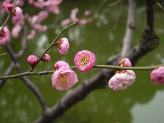 吃药,吃什么就是不退烧!所以干脆请了一天假去看病 虽然我这人总小就怕因为自己生病而见医生或进医院 不知道为什么,反正就是每次生病到医院,病就基本上好的差不多了。 早上出门前,我自己量了一下体温,比前一天量的下去了一度,暗自高兴。 但是我仍旧向医院出发,主动去挨一针,因为我不想小病拖大病。 只是很不幸的是,受小时侯的影响太深了,居然在我很坦然的情况下,又发生了。 到医院再一量体温,居然又下去了一度,快到正常值了。 兴奋的我揣着小护士给的挂号的牌子(纸的,没价值的)就跑到旁边的公园看梅花去了。 呵呵,反正有一天的假呢,我可不想就这么虚度,而且是10号!!更要充分利用的说。 一进公园大门,就 见一株蜿蜒的绿梅开的正好,赶不及的就上前给她找个好姿势留影。一边闻着暗香一路拍一路走,猛然间发现怎么没个