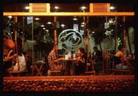 昨天一场蓄谋已久的狂暴,将雨水掺着冰雹倾泻倒进京城。八时许,雨歇,涉足积水的道路,浏览夜色里的三里屯酒巴街,酒巴联成铺了,但都不大,意味深浓的格式,勾引着各有偏好的人们。因为雨刚收住,酒巴门前才忙碌起来,男伺们竭尽巧簧般唇舌吆喝着,隔窗可见黄亮的灯下,美人三两晃着,好象也在唱着,女酒保则穿着未达标的超短促销装,拧着走着招呼着,推销超小包装的瓶儿,酒未开,香先袭。今天格外玉宇净澄,蓝蓝的天的背景做了闲云的画布,象纤纤的女子在宇庭漫步。回想南国的雨雾,北国尤显其壮高。记得96年站在香山远眺京畿,只看见混云迷雾