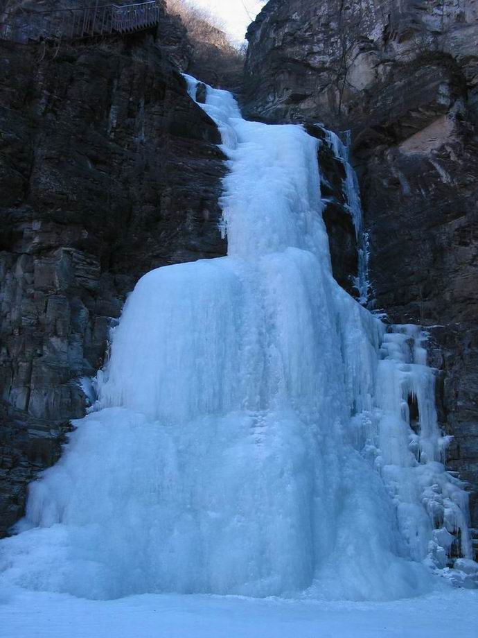 缘起我爱山,我爱山上的冰雪,我爱山上的冰雪童年! 在印象里,冰雪隆冬的神奇景象始终是小朋友的最爱。小时侯老家每到冬春交季时,总会下几场大雪,等雪还没来得及消融,到处又都冻上厚厚的冰,小伙伴们总是能够从中找到不少乐子事。滚雪球、打雪仗、堆雪人(每次堆出的雪人都像重度伤残人士,呵呵),还有纱网抓家雀、砖头机关捕家雀、带着狗们上山下田埋野兔套。笨笨的小孩只能在冰上打打冰出溜、玩玩老鹰捉小鸡等毫无技术含量的小游戏,而聪明爱动的小孩儿,就不一样了:自己动手制作小冰车、一群孩子拿着长短不一的冰锥做刀枪玩攻防游戏,更强的是还有人从河里挖出整块的冰雕成小椅子、小猪什么的。每当到了这时候,无论大孩子、小孩子,甚至大人都是最快乐的……这快乐的光景总能持续到来年初春时候。 这一转眼快20年过去了,随着厄尔尼诺、拉尼纳等新气候词汇的出现,如今的小朋友就没我们小时侯那么好运气了。现如今这天气越来越暖,一个暖冬接着又一个暖冬。不过年初时,南方有些城市倒还遇上了多年不见的雪季,唉~~这都得归“功”于厄、拉兄妹啊,无奈!。一句话,现如今北京的冬天,实在不象冬天了,几乎快看不见冰雪了。就连老家农村,今年刚一开春,冰雪就全都没有踪影了。这让俺实在郁闷不少。 前些天和朋友小翟闲扯,居然得知双龙峡这个地方这时节还有冰雪。没想到,实在没想到,现如今看冰不用奔东北,咱京郊就有个印象中的冰雪童话世界。 有好事就不耽搁,这不,抽了个不加班的周末,一行五人奔了门头沟双龙峡自然风景区,打算活动活动筋骨、撒撒欢去,也为寻找小时候的那些乐子事。 揭秘双龙峡 动身之前,也曾试图向周围打听打听双龙峡的详细情况,没有谁能更详细告知,无奈之下只得求助Internet net。搜遍了所有关于双龙峡的信息条目,我确信,