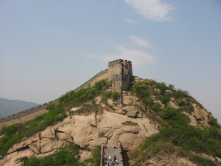 14年前还在念小学的我到过八达岭长城,一处长长的近乎垂直的阶梯,延绵的长城和顶峰好汉坡至今仍深深的留在我的脑海。在北京读书的第一个五一节,我选择去了八达岭长城。五月的北京天气非常不错。晴朗但不炎热。蓝天白云下,群山起伏,深色的长城匍匐在青山之颠,连绵不绝。待在城里久了,腿脚早就跃跃欲试,踏上长城便有向上奔跑的冲动,仿佛我就是那古时守城的战士。对于从小山里长大的我来说,八达岭的坡度实在算不上什么,何况长城上是那么的平坦宽敞。只是中间有一段确实比较陡峭些罢了。爬到海拔868的好汉坡,迎着山风站立,抚摸城墙,用心感