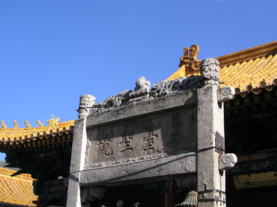 05.05忻州至五台山只有两个多小时的路程,到了进山收费处,天气一下子从春天又被推回到冬天,所有的收费的人都是绵大衣裹身,唯有那些从山外来的游客还是半袖T恤,在寒风中冻得瑟瑟发抖。交了九十元的进山费便向东北方向开去。 五台山从南边进山的路修得不错,很平坦,后来听说是因为当年克林顿要来赶修出来的,不知真假。驶入山区,树木依然如冬天般的萧杀,看来五台山的春天应该是在七八月份了。车沿着山路前行,忽然发现一个僧人正在三步一叩头地向前走着,寒风不时地将他的僧袍撩起,而他却丝毫不为所动。不由得,对于自己即将前往的被称为东方的