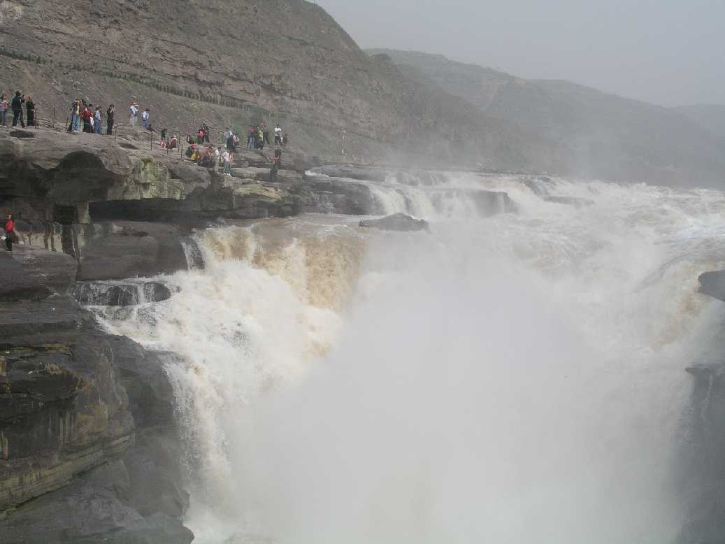 05.02经当地人指点,我们穿过了几个村间小路后,终于又回到了209国道。此段道路平坦,一路顺利到达吉县。补充了一大堆瓜果蔬菜之后,我们沿着箭头所指方向向壶口出发了。 吉县到壶口这段山路实在不敢恭维,45公里的路程全部是弯路,没有直道, 几乎是三步一拐,五步一弯,左弯右弯,上弯下弯,真个是弯弯曲曲无穷尽也,弯得让人有些心烦意乱。大领纵然技术高强,也因平时少练习,而在这弯弯曲曲中手心出汗了。(呵呵,我是我想的,不是他说的。)经过将近两小时的弯弯绕之后,我们到达了壶口。 出得车来,心中充满诧异, 天哪,这就是壶