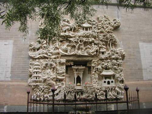 五台山—恒山、悬空寺—大同(五)———龙泉寺 夜里下了大雨,第二天一早,雨虽然小了,但登台的希望是没有了,有公共汽车到南山寺和龙泉寺,据说还是很值得看的,所以吃了早饭就乘车前往。 龙泉寺由九道山岭环抱,东西两面各有四道山岭,犹如九龙会饮,所以此山称九龙冈,寺东侧有眼山泉,清澈见底,谓之龙泉。相传,昔有九龙作恶,文殊菩萨施行佛法把它们压在山下,在清澈的泉水底部还可看到九条小龙的影子,龙泉寺因此得名。 此寺创建于宋代,原为杨家将的家庙。民国年间重建,成为南山寺的下院。进得寺院,一个白色的照壁展现在你的眼前。这个照壁