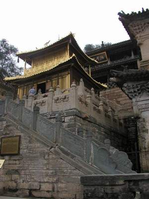 五台山—恒山、悬空寺—大同(三)——五台山(显通寺) 从菩萨顶沿路向下就来到著名古刹显通寺。这是一座规模宏大、布局严谨、院落宽敞、建筑独特的古刹,是名扬四海、蜚声中外、历史悠久的大寺。它占地4.37万平方米,现有房屋400余间,其中殿堂65间,是五台山最早、最古、最大的一座寺院,也是全国重点文物保护单位。据古书记载:东汉永平七年(公元64年),汉明帝刘庄派大臣蔡情、秦景等十几人赴西域拜求佛法:蔡、秦等在大月氏(今阿富汗一带)得到佛经、佛像,并巧遇正在当地宣传佛教的天竺(今印度)高僧迦叶摩腾和竺法兰,立即邀请他来中国讲经授法。他俩应邀与蔡、秦等人用白马驮载佛经、佛像跋涉万水千山,于永平十年(67)十二月来到洛阳。 永平十一年(68),汉明帝按照天竺佛教传统样式,建造了一座僧院以供二僧居住。为纪念白马驮经输像之功,因名白马寺(现洛阳白马寺)。 永平十一年(68),迦叶摩腾和竺法兰从洛阳来到清凉山,即现在的五台山。以慧眼观清凉山乃文殊菩萨的住处,又有阿育王所置佛舍利塔,环境清幽,加之五台山山势奇伟,气象不凡,和印度的灵鹫山(释迦佛修行处)相似,遂计划在