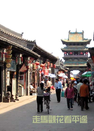 平遥古城位于太原南90公里处,又称“古陶”,北魏改设平遥县,一直延续到今,有1500多年的历史了。明清时期,平遥商业发达,商贾云集,成为重要的商贸集散地。清朝中叶,中国第一家票号又在此问世,使平遥的金融、工商业迅猛发展,赢得了“小北京”的美誉。这次到平遥,并没有太多的时间,只好蜻蜓点水一般,走马观花看个光景。即便是这样,也让我像发现新大陆一样,看到了中国近代的“华尔街”和繁荣的晋商文化。 抵达平遥的时候,已是下午3点了。当那道厚重的青色城墙从远方渐渐地接近,一个古老装着满肚子故事的城市也来到眼前。在那威严的城墙下,不知别人怎么想的,我感受到高大的城墙有着拒人千里的威仪,有固守不移的眷恋。不免想,那显露着富有和不凡的城墙,还有高高的门楼,日夜守护的究竟是什么? 从城西的凤仪门进来,先上城楼看了古城墙,眺望平遥城的远景,然后进城寻