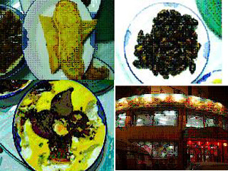 现在是晚上,刚吃完晚饭回家,这是我在东北的第一顿晚饭哟。晚饭是研的好友菲她们一家三口一起请的。在这之前,我和菲素未谋面,只是曾经在上海的时候通过电话帮菲买过东西邮到吉林。其实只是帮了一个不点儿的忙而已。到了吉林的第一个晚上,菲就执意要请我吃饭,足见东北人的豪爽好客。菲是个急性子,4点不到,她已经打过好几个电话来催我们吃饭了。她是一个很漂亮的很热心的女人。长长的头发像瀑布一样,直直的头发很顺而且很有光泽,眼睛大大的,年纪和研差不多大,不说绝对不会想到她竟然会有40多,她的闺女也很漂亮。 我们到饭店时,菲和女儿已经在楼下等了我们很久了,这时外面零下十几度,下着雪,很冷的,为了等我她一定挺辛苦的,so感动啊。进入饭店,我的天,里面人山人海,烟雾腾腾的,桌桌都是大大的盘子,热闹非凡,我想这里一定是好地方。俗话说,旅游要挑人少的地方,吃饭要挑人多的地方。这个地方人气那么旺,里面的东东一定很好吃。事实证明,果然如此! 现在就让我详细介绍东北的晚饭吧。 (我还是第一回吃到正正宗宗的东北菜呢,他们说东北菜口味重,我觉得还行,能够接受,绝对没有老妈吃的宁波咸蟹重)<