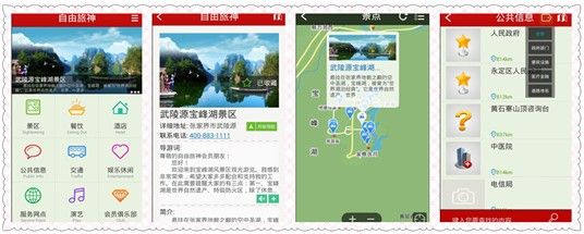 自由旅神官网整合了张家界自由行有效旅游及公共信息资源,有酒店预订,自由行旅游度假所需要的必备物品,冬夏事项,各旅游景点的游玩攻略,景点公告优惠活动等内容,更有符合特殊人群的个性定制服务,可以说到张家界旅游自由行,必登自由旅神官网。 去年八月,由张家界自由旅神国际旅行社研发的“自由旅神”智能电子导游APP正式投入使用,它按景点游览、酒店、交通、餐饮、演艺、娱乐休闲、会员俱乐部、服务网点和公共信息等九大类内容。下载“自由旅神”智能电子导游APP(安卓版、IOS版)到智能手机上,就可以实现张家界景区游览导航、景区景点语音讲解、实时定位等核心功能,真正实现“资源跟着行程走,导游时时伴你行”的业界神话。为游客提供全面、实时和贴身的服务,又无须支付额外的服务费用,让自由行回归“轻松、自由、快乐”的本质。
