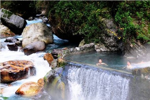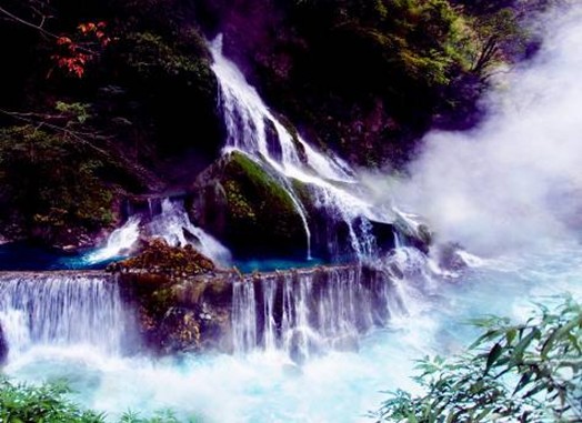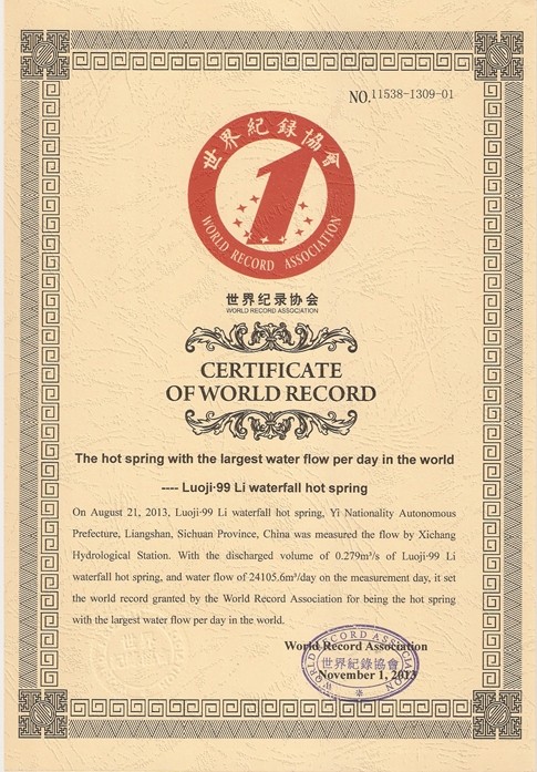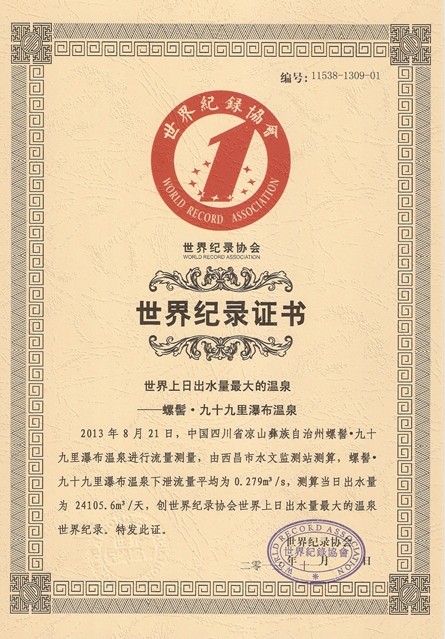世界最大温泉瀑布 螺髻九十九里,坐落于小春城西昌以南39公里处,是国家4A级风景区。螺髻·九十九里,是螺髻山景点最为集中的区域,是螺髻山的核心景区,核心景区纵长九十九里,这里一里一个景,九里一个奇观,共九十九景,故名螺髻九十九里。螺髻九十九里横跨两县一市,面积达到2400平方公里,拥有百瀑谷、云端之上、螺髻第一峰、千年原始森林四大景观带。 座落于百瀑谷的温泉瀑布,是世界最大的温泉瀑布,也是每个来螺髻·九十九里的游客必到的地点,这里的温泉从半山腰喷涌而出,水质清澈,且可以直接饮用。十分宜人。特别是温泉流经山中的洞穴形成一个个水潭,在潭中洗浴如仙境一般。此泉不论春、夏、秋、冬,水温基本不变。即使狂风、暴雨,泉水依然清澈如镜。泉水分三台飞泻而下,形成宽约7米,长20余米的瀑布,使人大有“石壁高干仞,银河落九天”之感。温泉喷口下天生一个长槽形大池,可同时容纳20余人沐浴。更美妙之处在于瀑布形成的水帘挂于大池之外,因此被人称为“水帘洞”。水帘洞两边又各有一水池,每池可容纳二人,称为“鸳鸯池”,是情侣的好去处。瀑布飞泻的第三台处,在洁白的瀑布,身临其中,任其捏、揉、推、拍,舒畅至极,是任何人工按摩所不及的,旅途的疲劳瞬间即逝,乃人生最大的享受。
