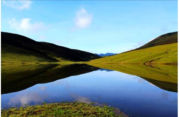 螺髻第一海 螺髻第一海做为螺髻九十九里的另一大看点,是与百瀑谷截然不同的一派高原海子风光,这里是除邛海湿地外的另一片湿地景观,放眼望去,天地茫茫,云层高速流转,仿佛已置身青海高原一般;螺髻第一海,是整个螺髻九十九里景区最大的海子,如镜一般,清澈,纯净,与这里的牦牛、羊儿、马儿,浑然一体,和谐如画卷般。