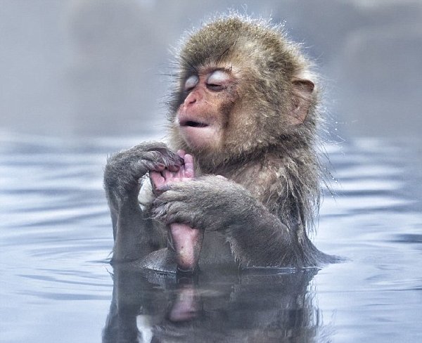 日本中部地区地狱谷野猿公苑的一只小雪猴效仿人类泡温泉,其表情看上去欲罢不能。 地狱谷野猿公苑里有瀑布、泡池和休息平台,已经成为200只日本猕猴的家园。日本猕猴,又称日本雪猴,它们在50年前就开始效仿人类泡温泉,并学会了利用温泉的益处。为了避免人猴发生争夺温泉的冲突,人类为猴子专门建立了特殊的温泉池,这个池子位于地狱谷的高处,远离人群。