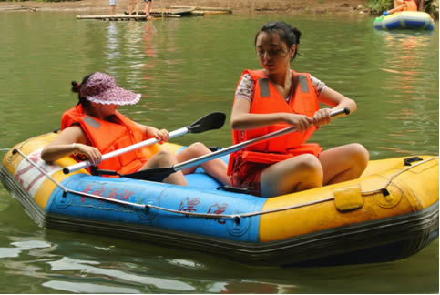两河漂流,玩的不是刺激,而是这一份怡然自得的意境。游客可以自行调节漂流节奏,真正 “任性”一回。你可以闭上眼睛、放空思绪,任皮艇随意漂流或静止;也可以在与同伴嬉戏中,用力划动船桨。这一静一动之间,不短不长的一两个小时就这样以最优美的姿势流淌过去。